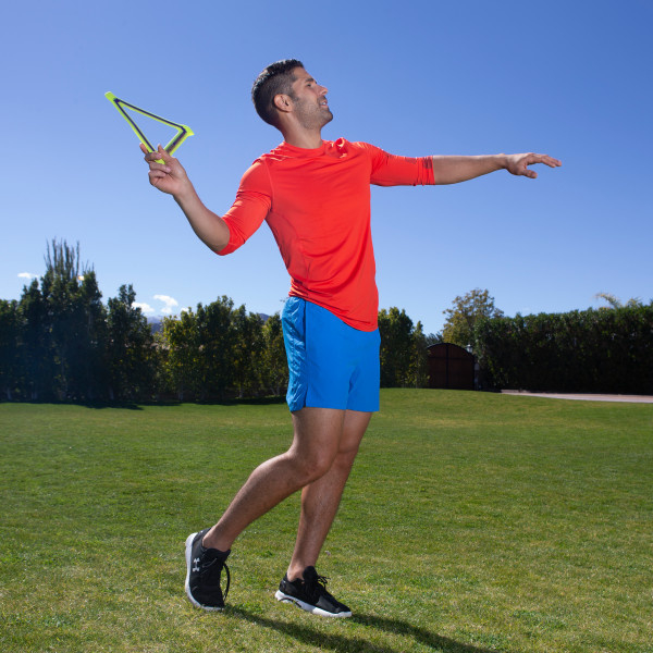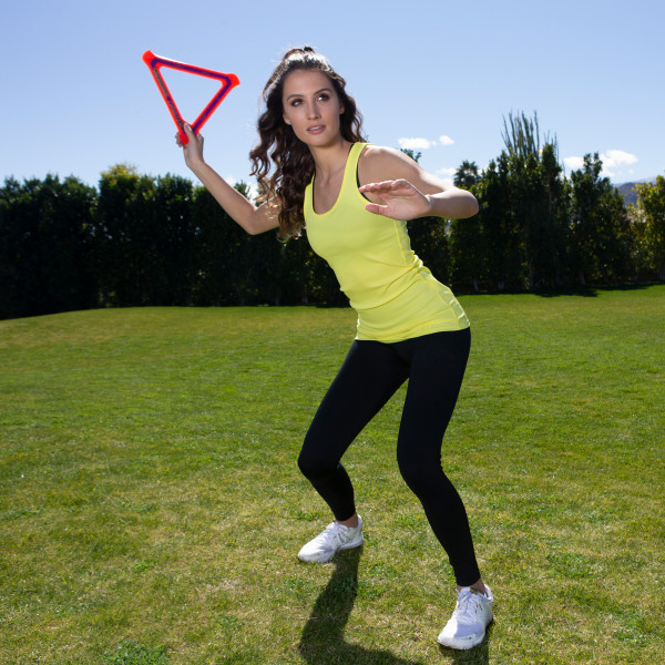 De Aerobie Orbiter Boomerang levert buitengewone prestaties! De Orbiter kan tot wel 30 meter ver vliegen voordat hij terugvliegt en heeft zachte randen en een driehoekige vorm voor betere grip bij het vangen en gooien. Dankzij het open midden kan elke speler zijn werp- en vangstijl personaliseren: pak de rand met je hand of gebruik het midden om hem met je arm of voet te vangen. Creëer je kenmerkende moves met Aerobie-vliegschijven!